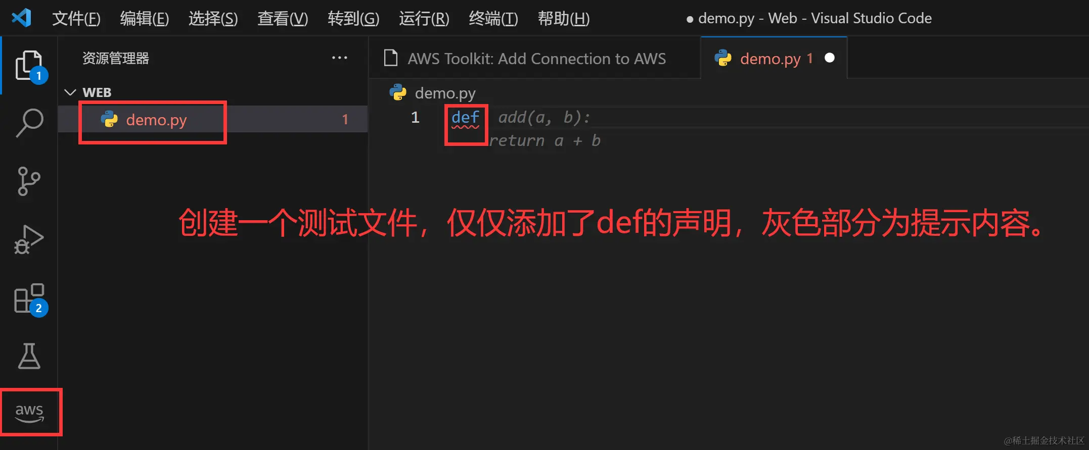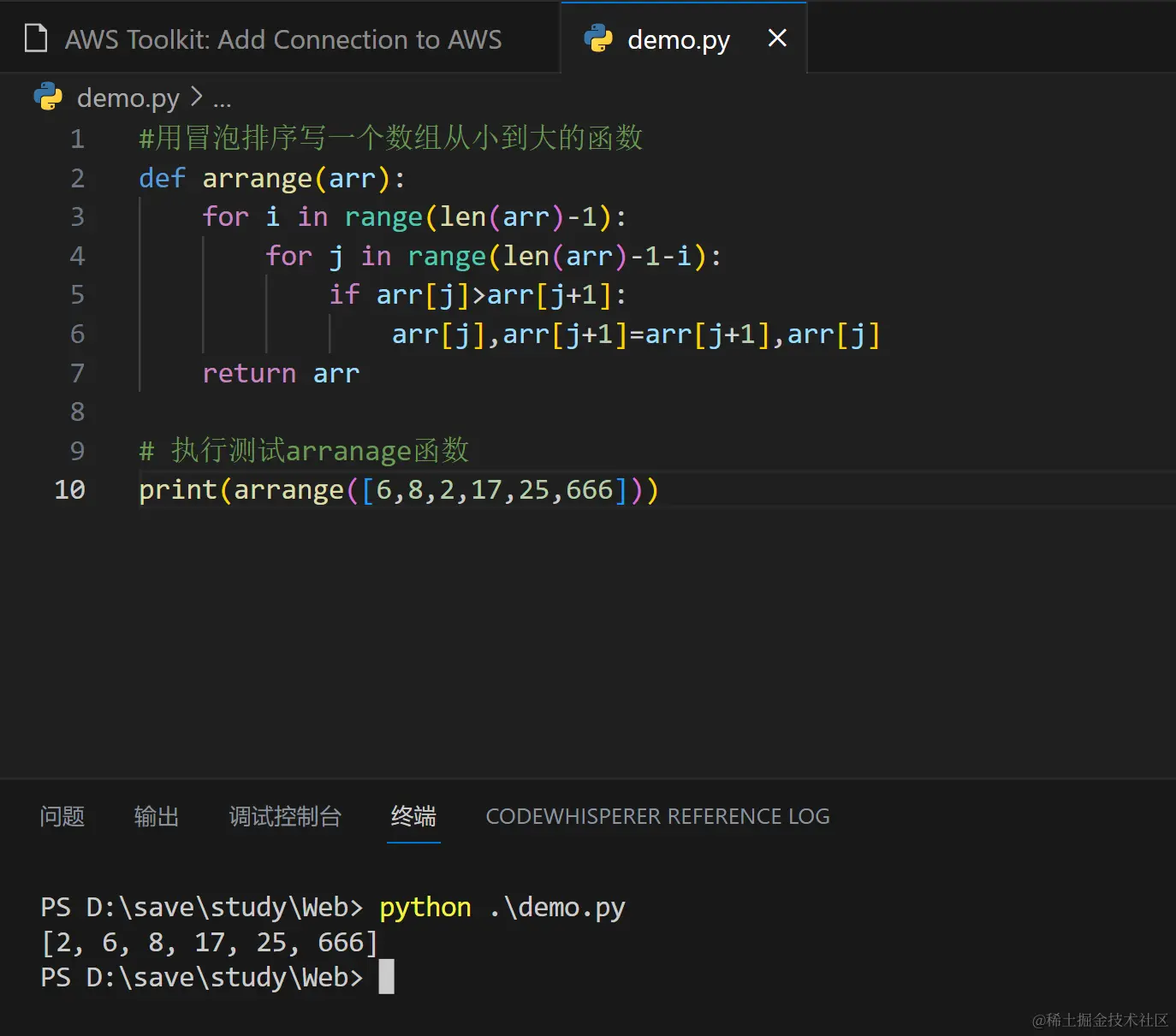 那么接下来我会完整的进行Amazon CodeWhisperer各种提示功能的测试,帮助大家更好的了解以及使用这款插件。