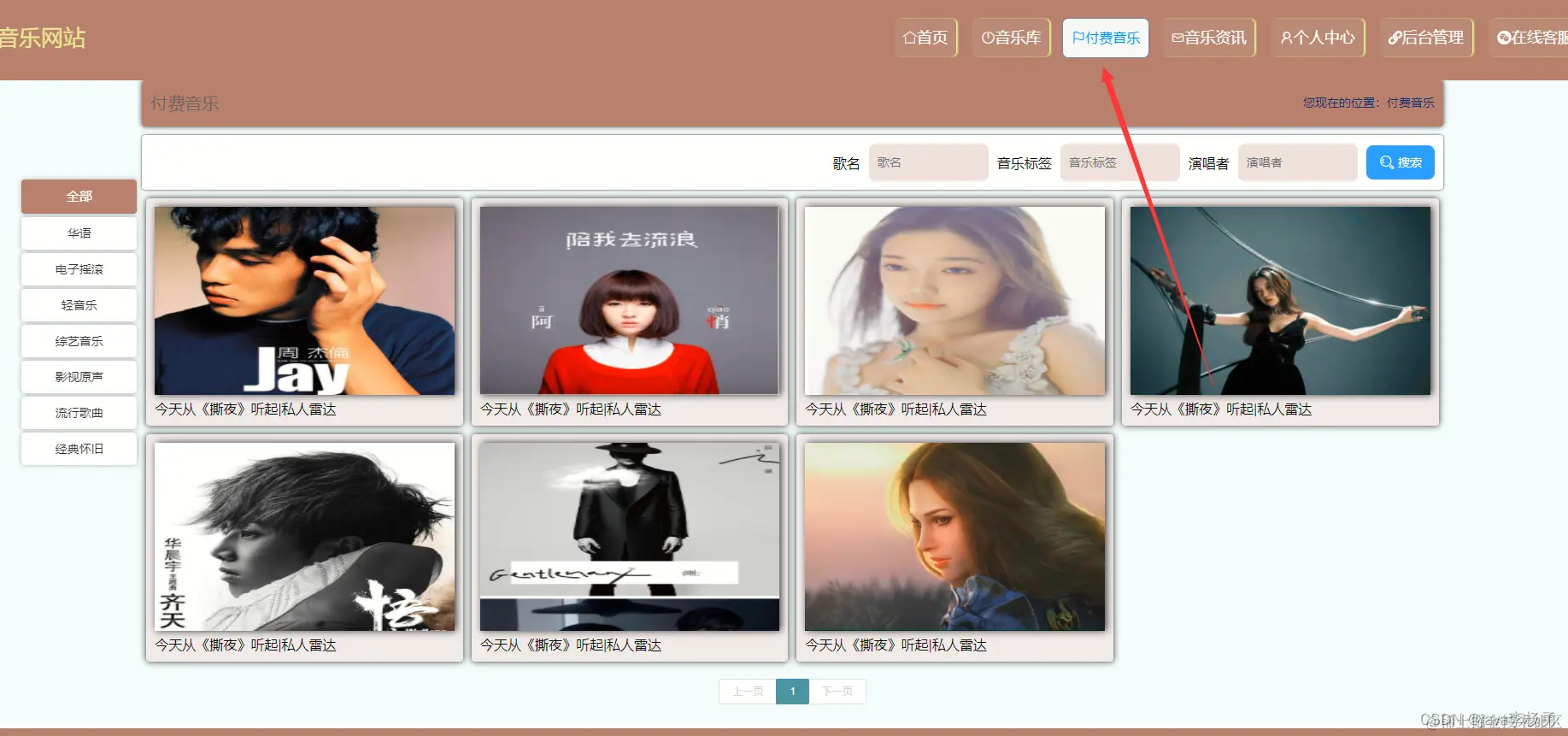 付费音乐管理: