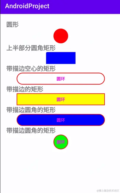 以上是实现的6种效果,基本上drawble能实现的效果,通过代码也可以达到同样的效果。更多效果需要读者自己动手实现。