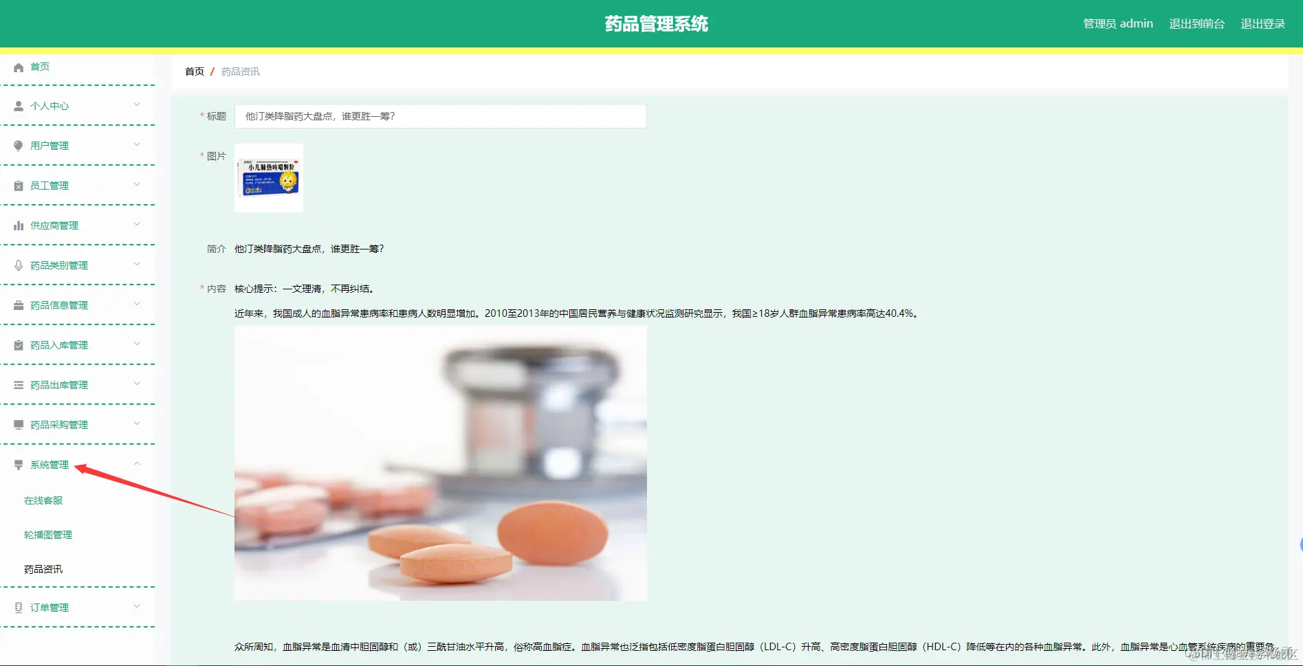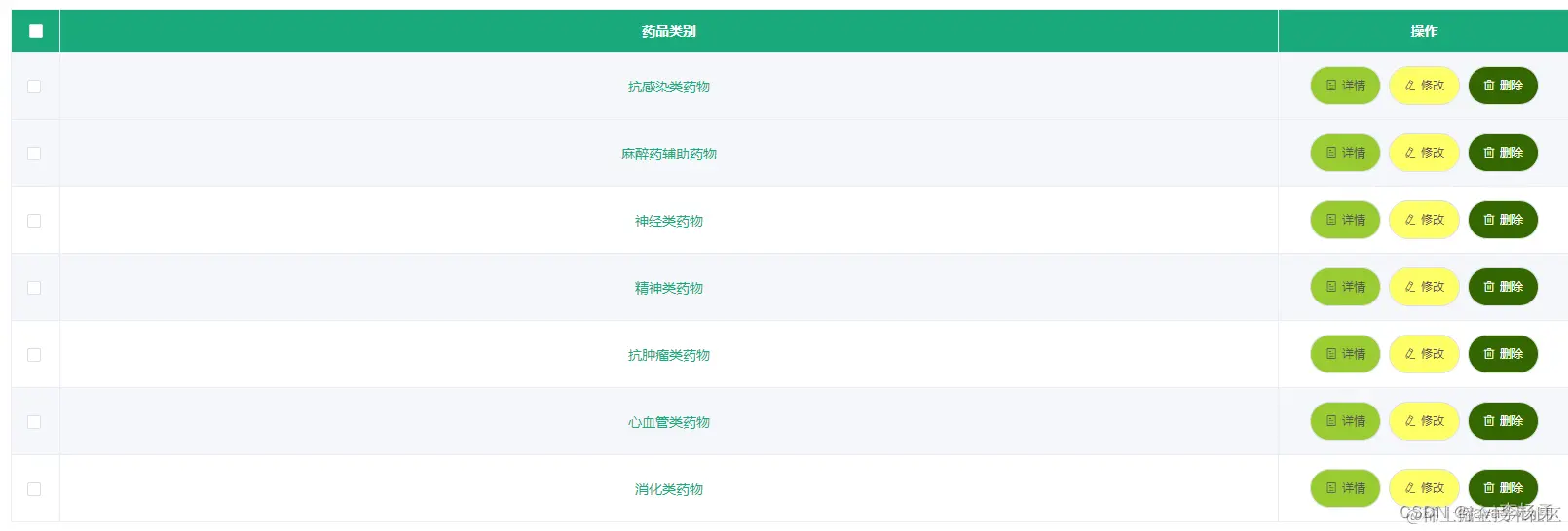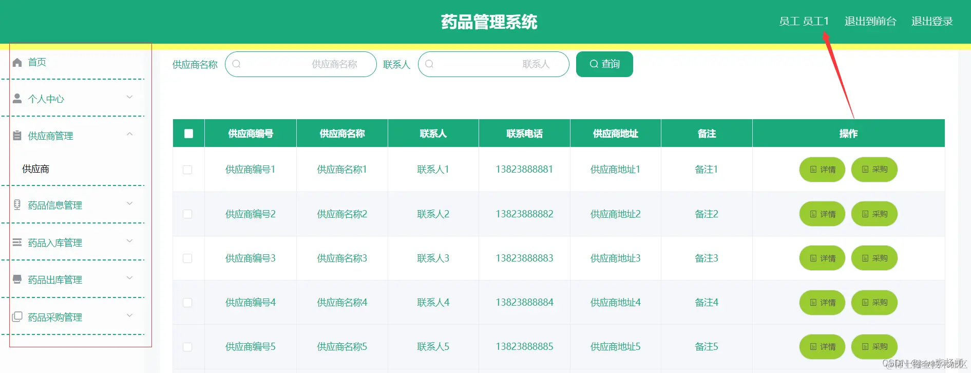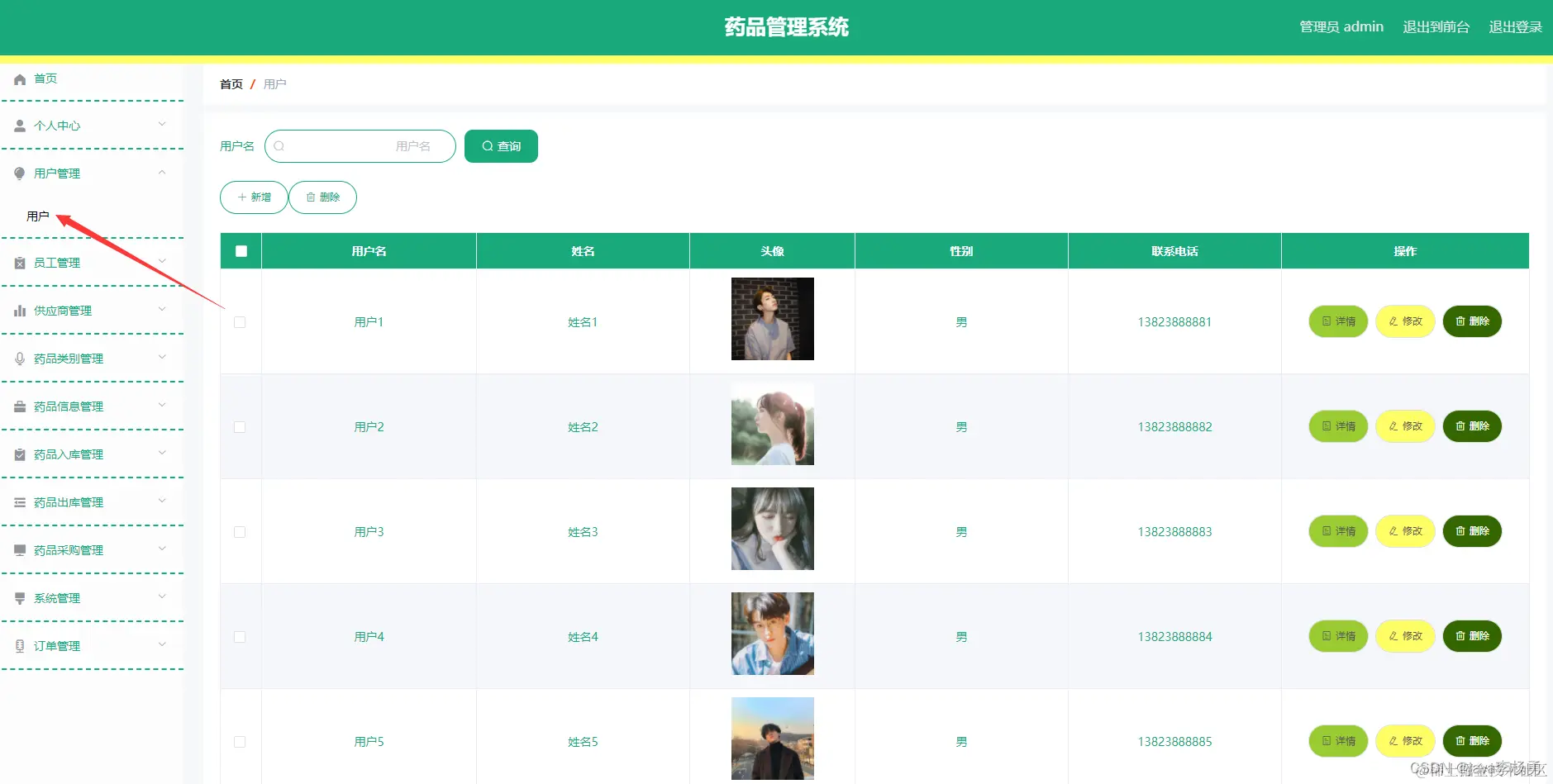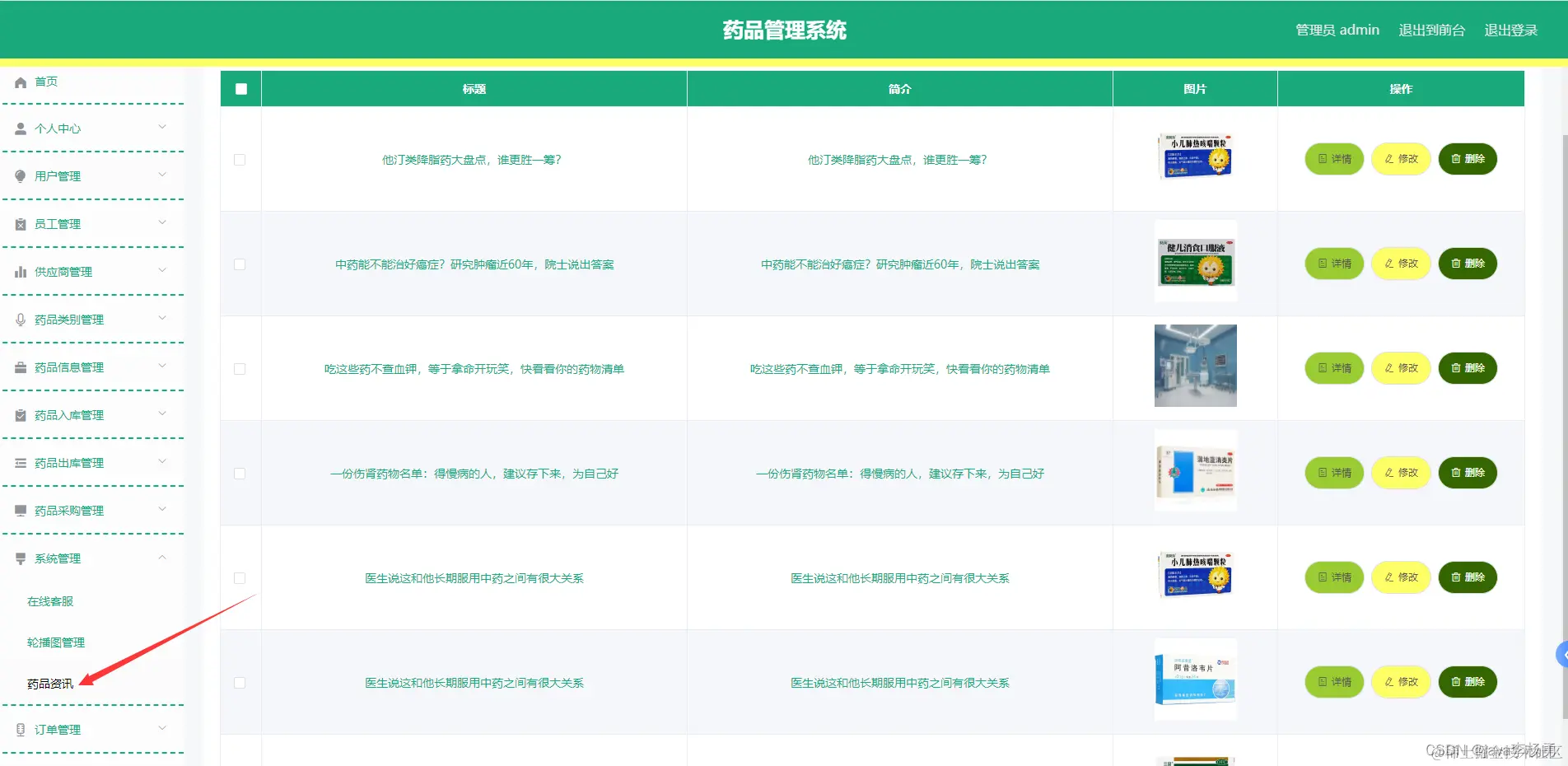功能完善:可管理主页、个人中心、用户管理、员工管理、供应商管理、药品类别管理、药品信息管理、药品仓储管理、药品出库管理、药品采购管理、系统管理、订单管理等模块的修改和维护。