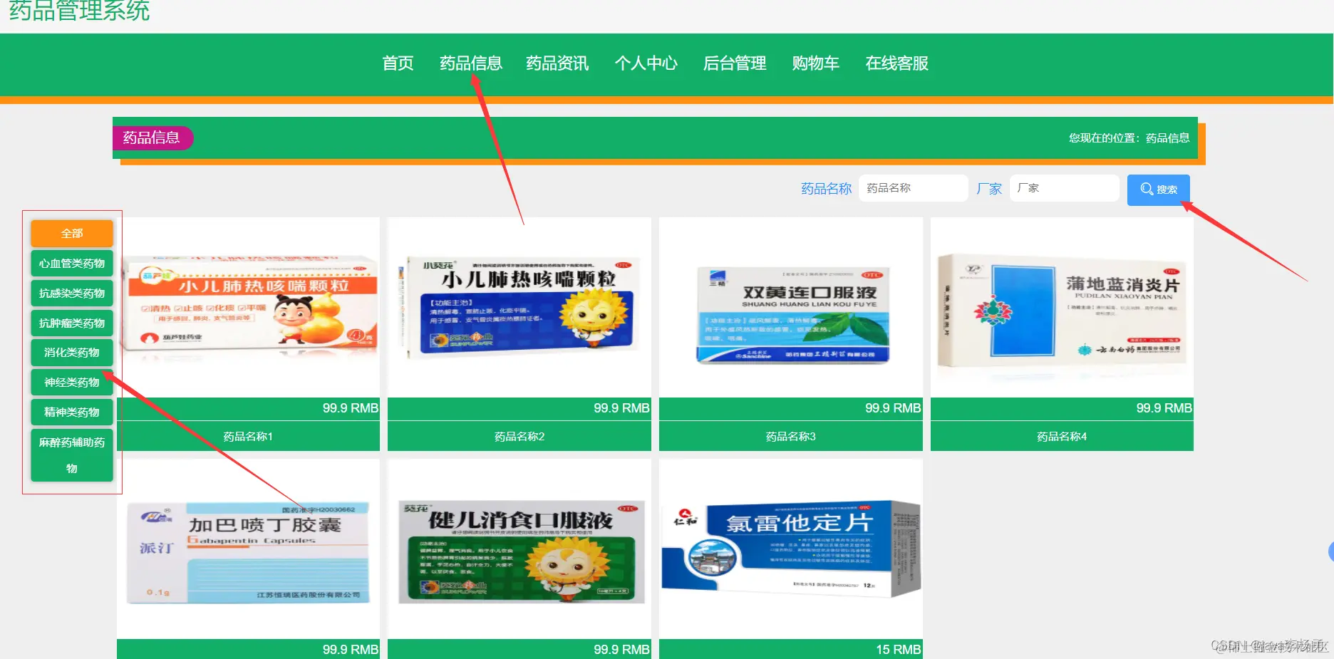 (6 药品信息 ) 主键,创建时间,药品名称,药品种类,图片信息,规格信息,厂家信息,有效日期,数量,药品详情,最近点击时间,点击次数,药品价格