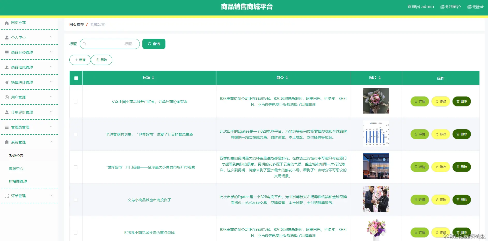 系统后台是对数据的维护,功能都是齐全的,这里就不做一一截图了。