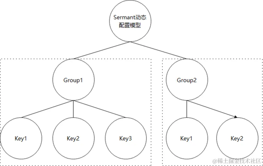 Sermant动态配置模型是一种基于分层模型设计的配置管理方案,它的核心组件包括Group和Key。Sermant通过不同的Group(分组信息)来对配置项进行隔离,使配置管理更具灵活性和可扩展性;同时,通过Key对配置项进行具体属性的标识,实现了对配置项的精准控制和高效维护。