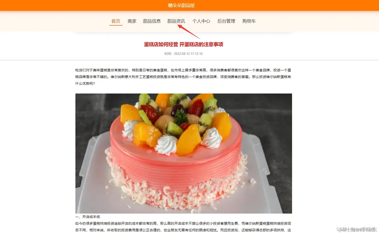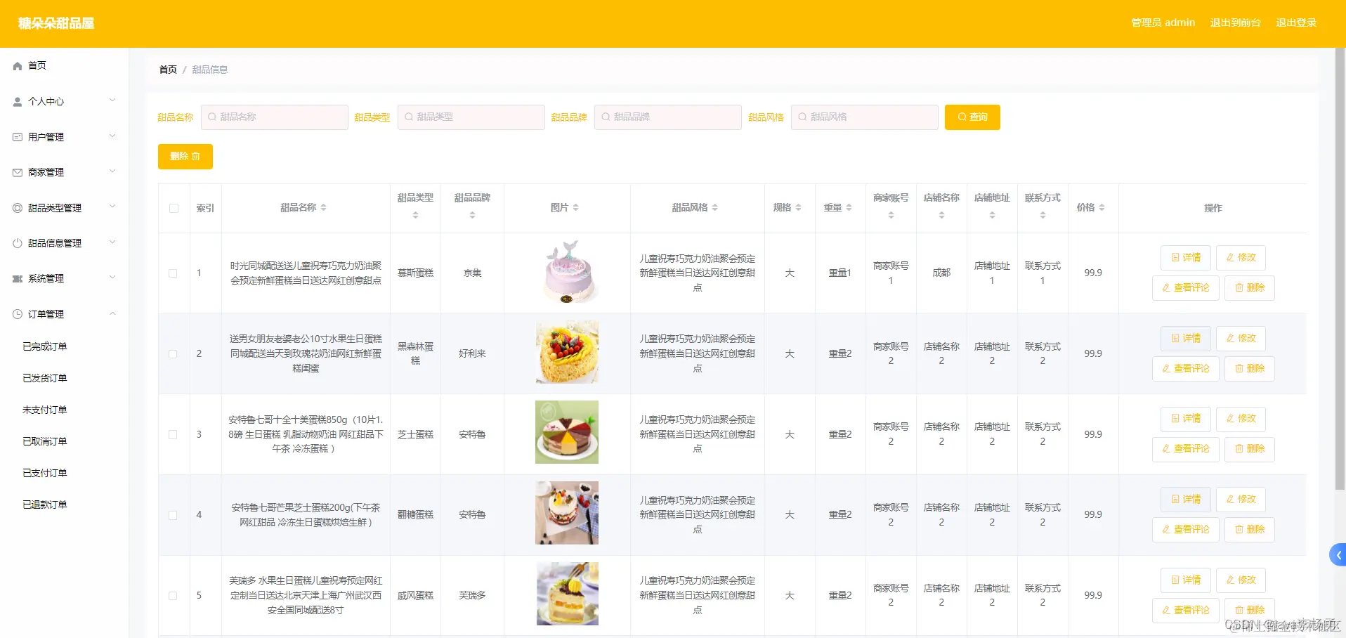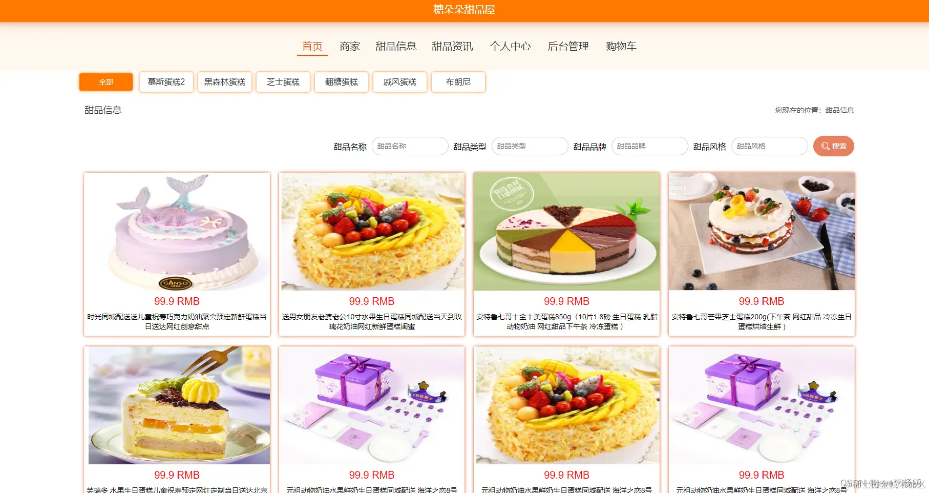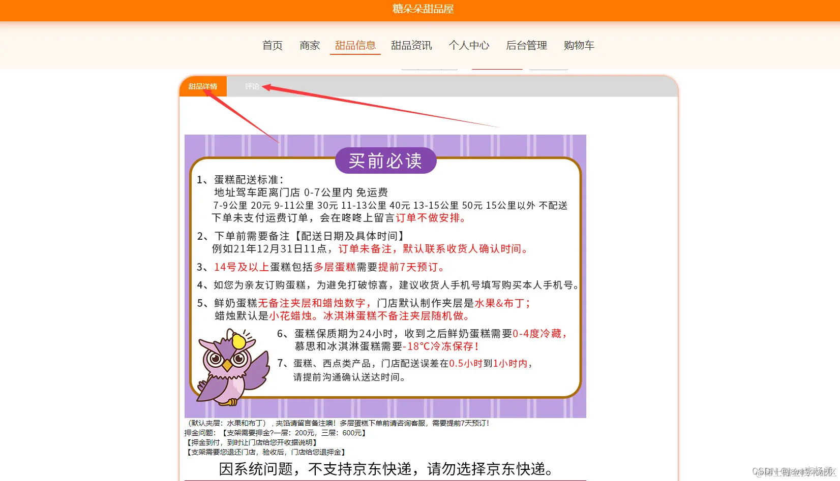 四个多月的毕业设计,最终完成了糖朵朵蛋糕甜品商城系统。网站的功能勉强达到了最初设想的结果,完成了最简单的需求。系统界面虽然看起来有些多,但都是简单的功能页面,用户操作容易上手能完成。感觉第一次独自设计一个网站是从头再学习的过程,在此期间也巩固了所学的书本知识。