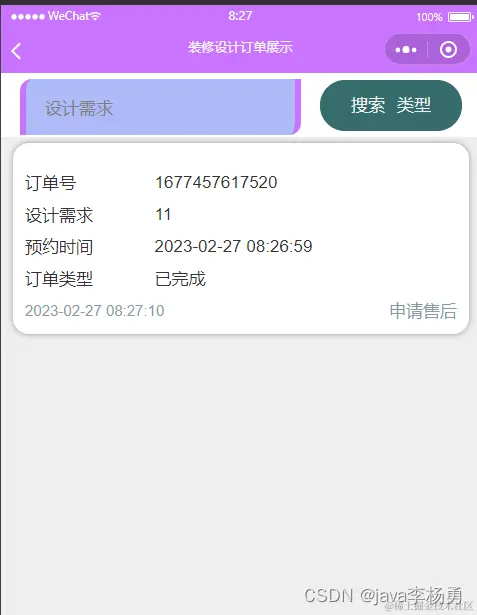 | 2 | zhuangxiu_order_uuid_number | String | 订单号 | 是 |