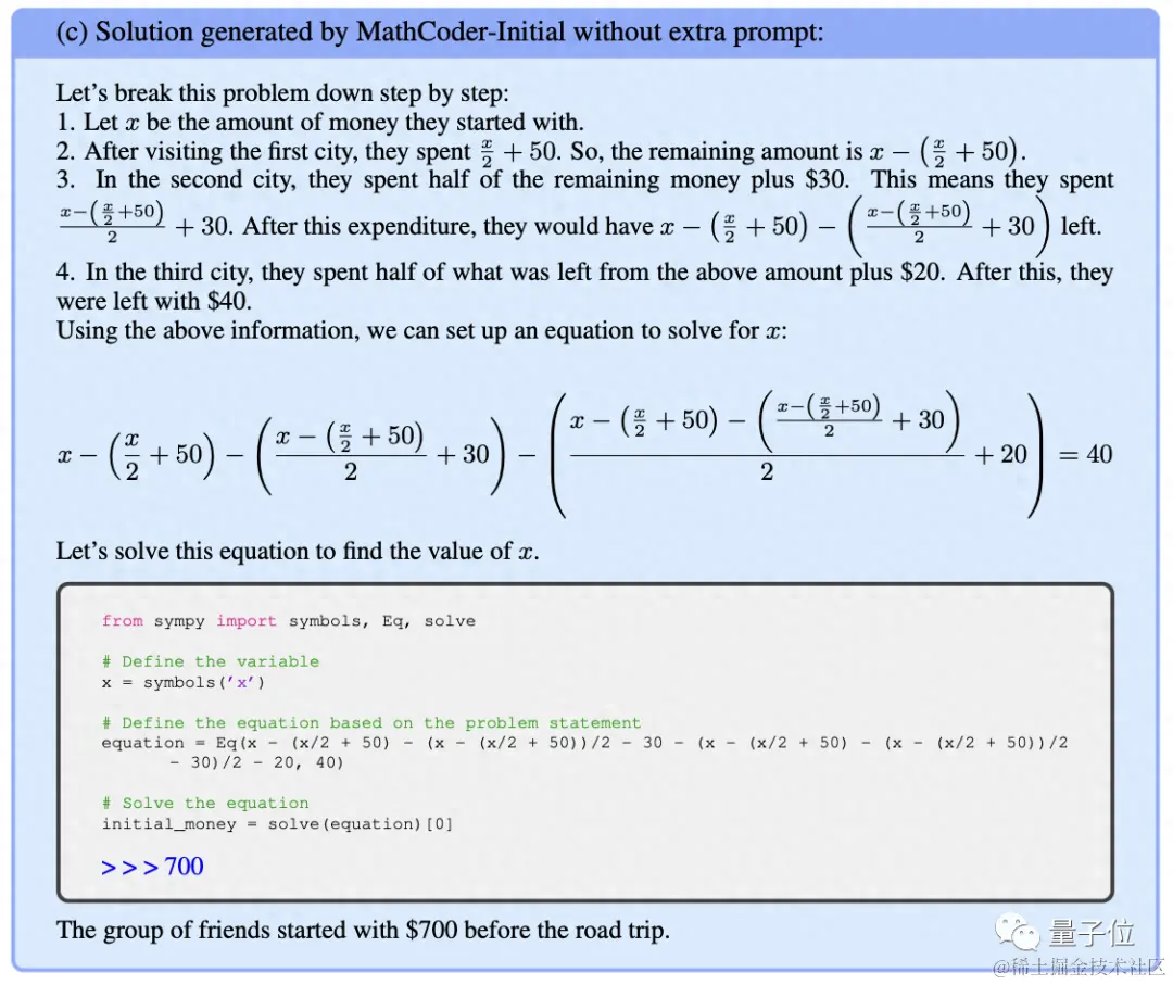 最终,该方法使微调模型 MathCoder 以类似 GPT-4 代码解释器的方式运行。