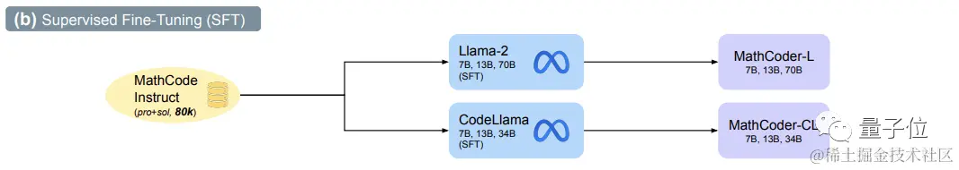 在数据集准备好以后,团队便提出了一种定制的监督微调和推理方法,最终在 Llama-2 和 Code Llama 上微调出了 MathCoder。