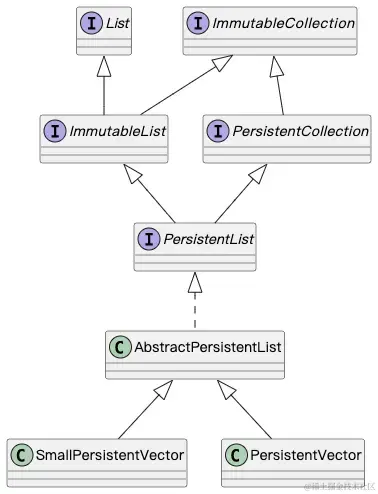 PersistentVector代码分析看上去是由链表加上二级指针的方式去管理buffer,但两者核心都是一个不变的数据结构,