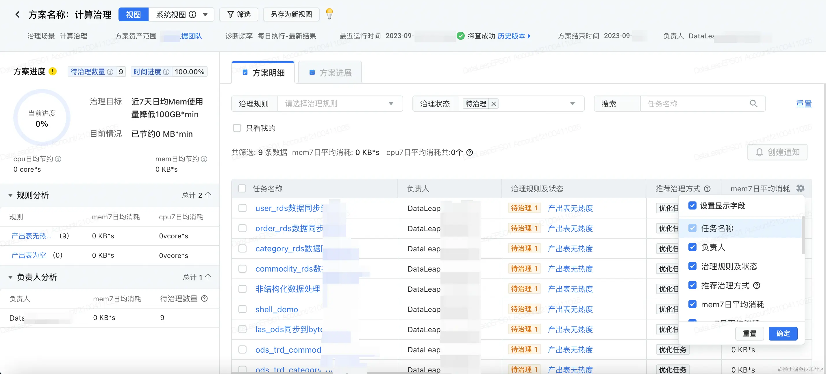 自主复盘:效果复盘,治理成果自主查看 ,支持最细到表与个人查看治理收益