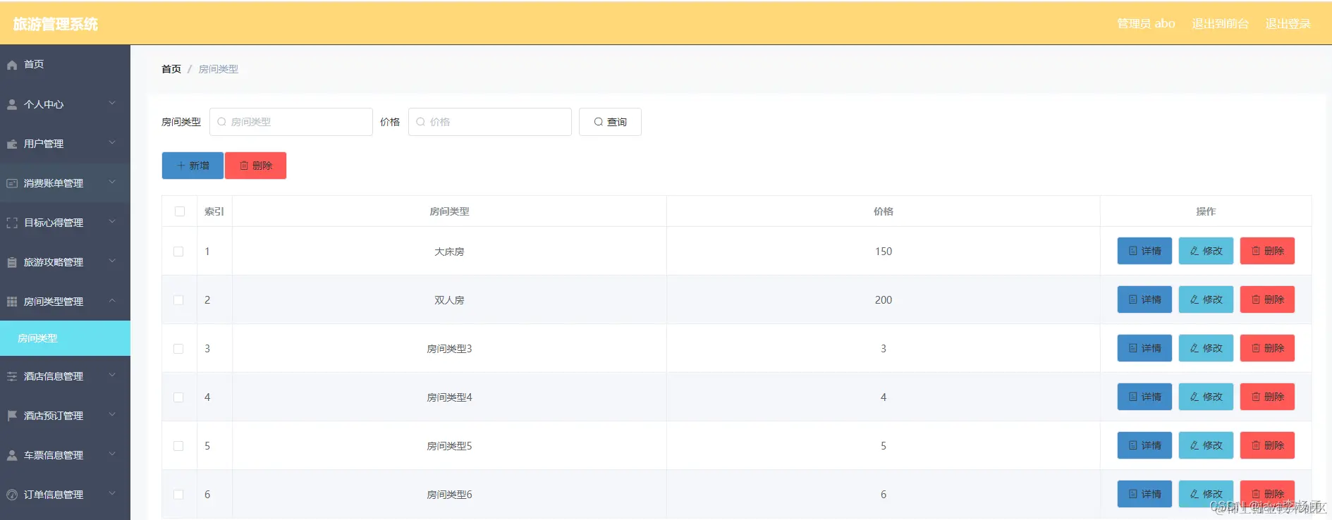 房间类型管理: