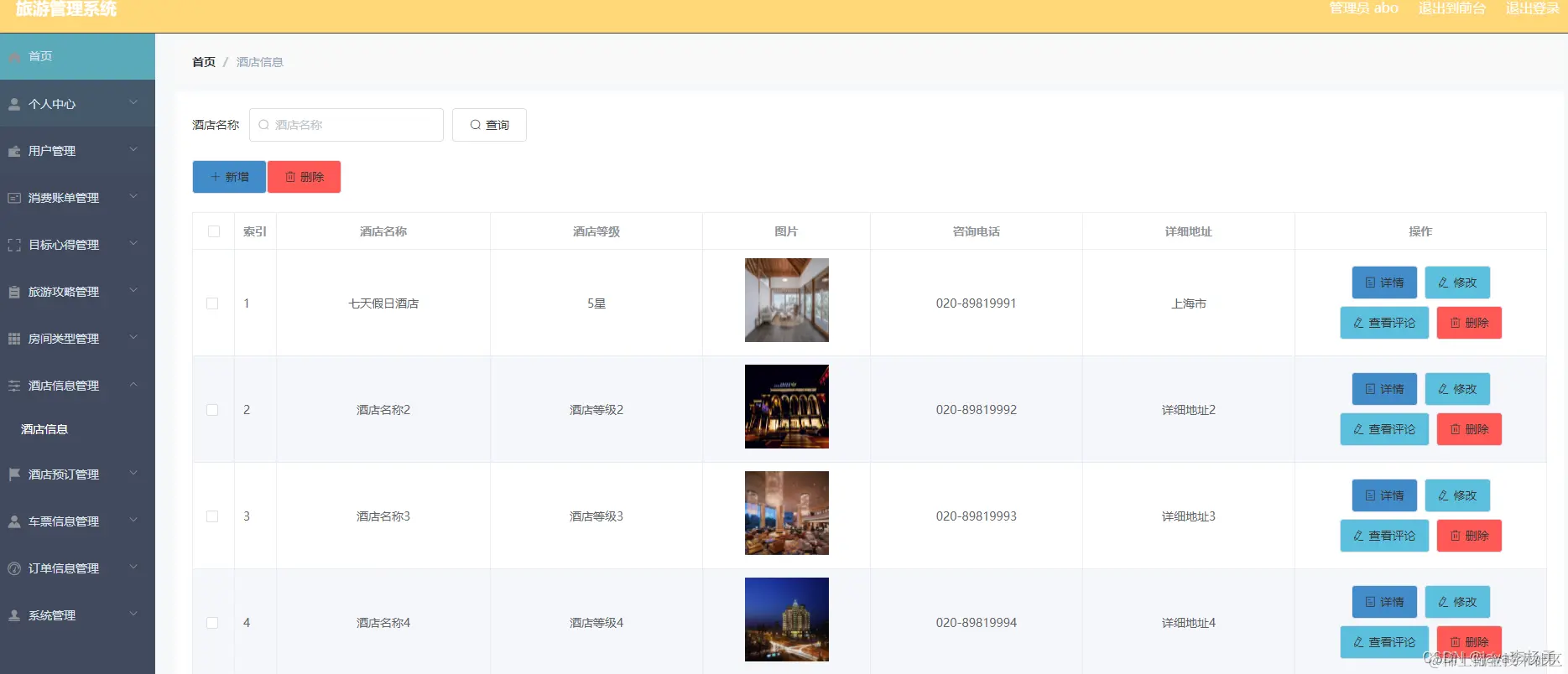 酒店信息管理: