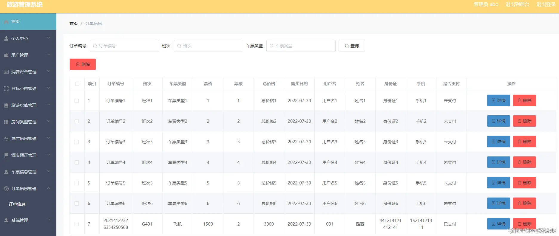 订单信息管理: