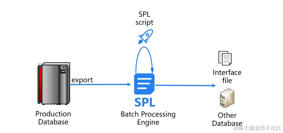 首先来看数据的入库、出库问题。SPL可以直接基于生产库导出的文件计算,不必再将数据导入到关系数据库中。完成跑批计算后,SPL还能将最终结果直接存储成文本文件等通用格式,传递给其他应用系统,避免了原有跑批数据库的出库操作。这样一来,SPL就省去了关系数据库缓慢的入库、出库过程。