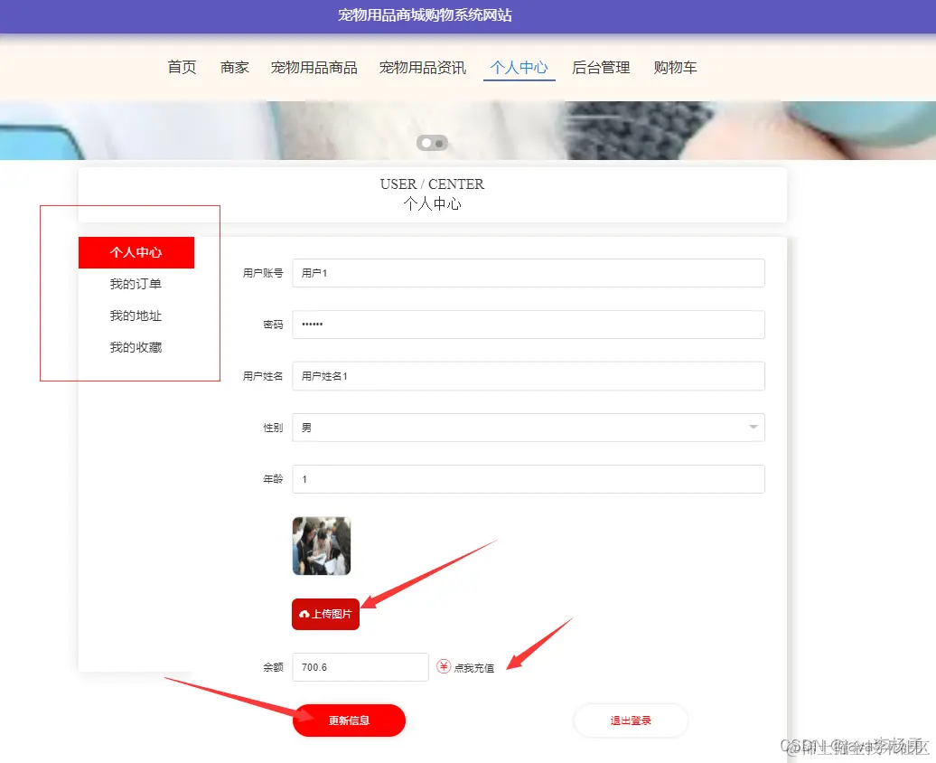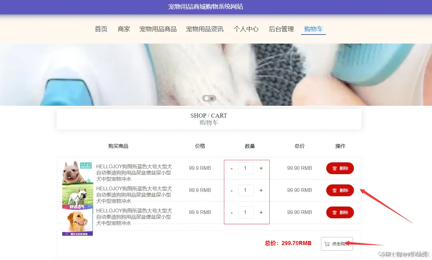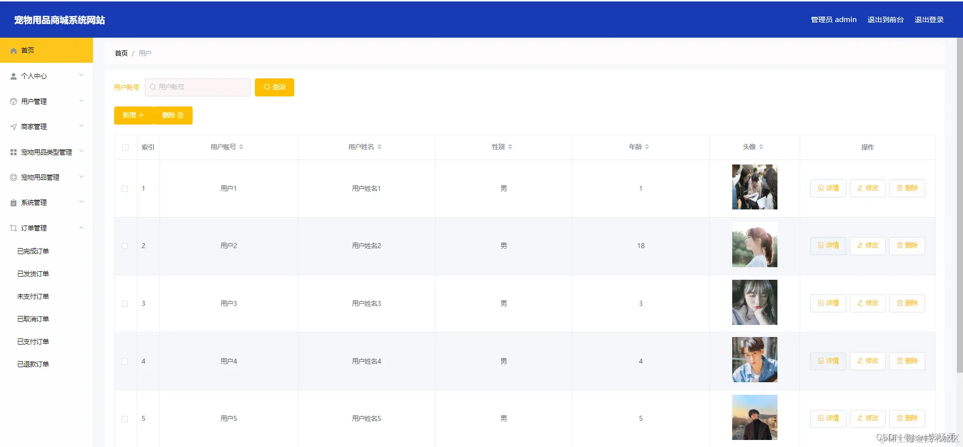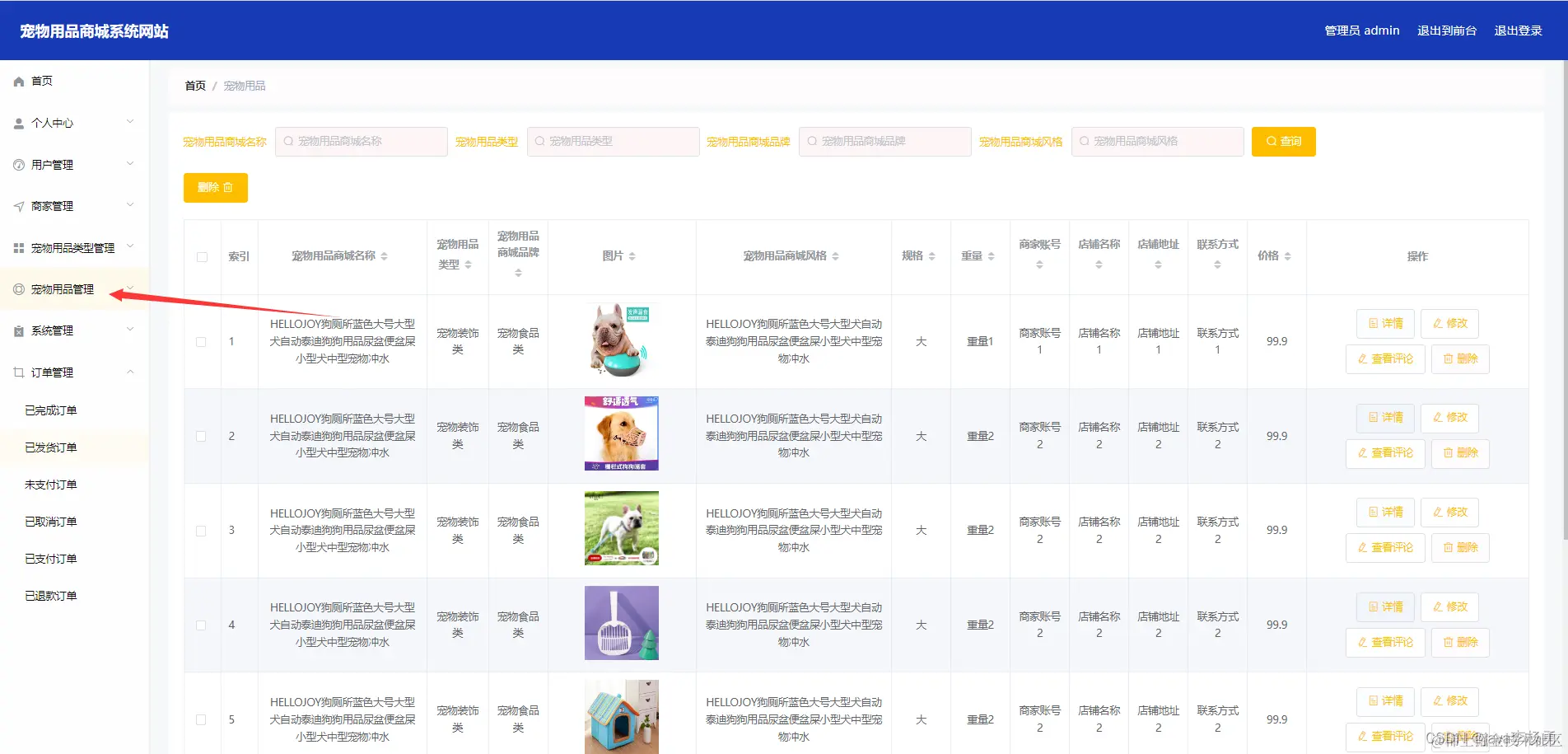前端默认首页地址是显示宠物用品资讯信息,点击可以查看详情资讯。首页主要功能是用户宠物用品商家的查看,商品信息,详情 ,购物车,订单,购买,收藏,评论等操作都是可以的。