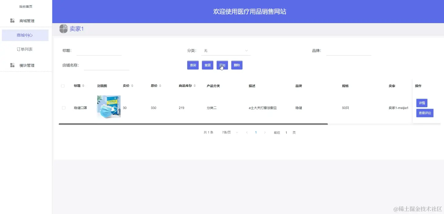 管理员可以在“商品列表”中展示商城中需要销售的商品,包含商品名称,商品属性以及类目等商品信息。管理员可以对商品进行搜索,按分类查询商品。