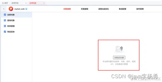建模页面中直接一个大按钮就放在中间,点击【新增业务对象】。