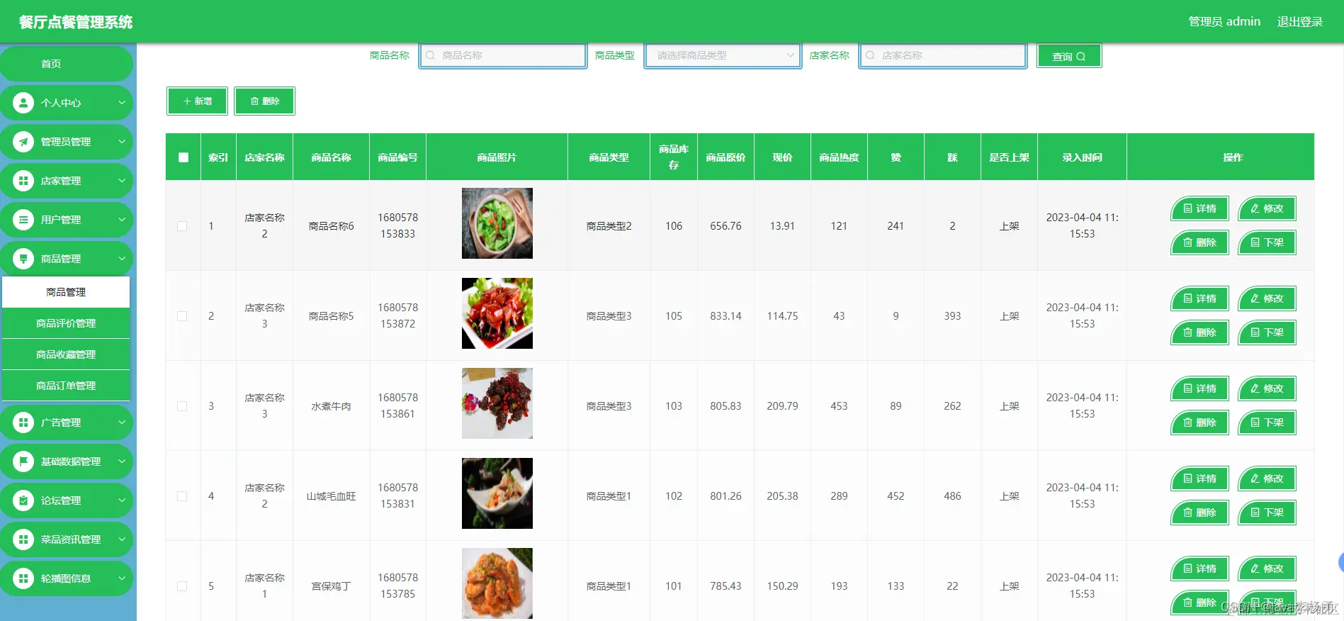 宿舍管理,在宿舍管理页面中可以添加宿舍名称、宿舍类型、床位数量、所在楼宇、配套设备、负责宿管、宿管姓名等信息,还可以根据需要进行详情、添加或删除等操作,如图5-4所示。