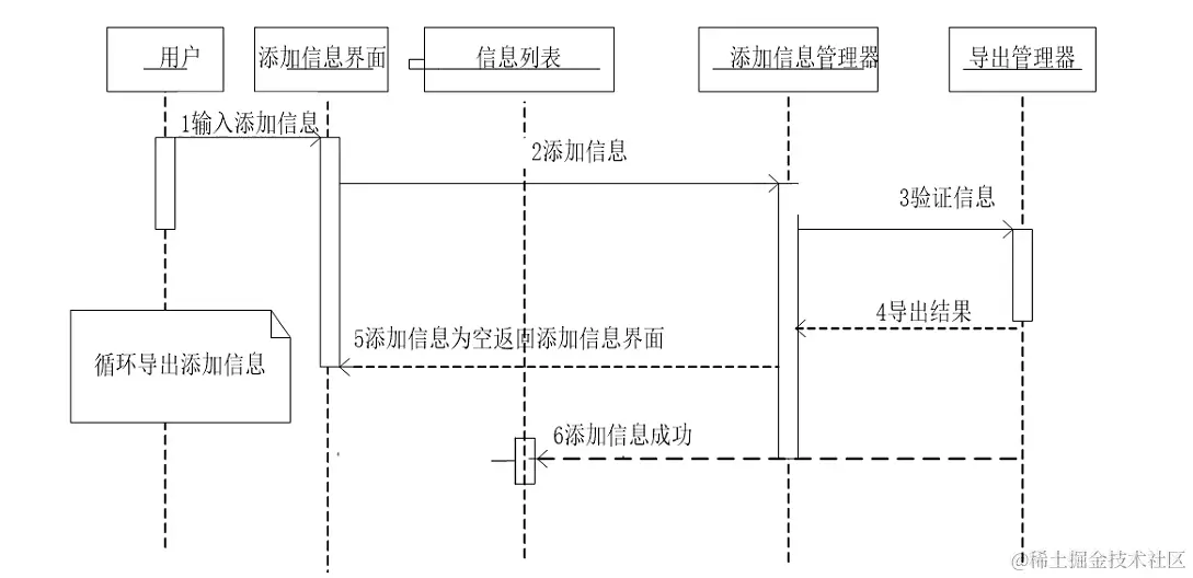 管理员以及用户登录后均可进行添加信息操作,添加信息模块顺序图如图4-4所示。