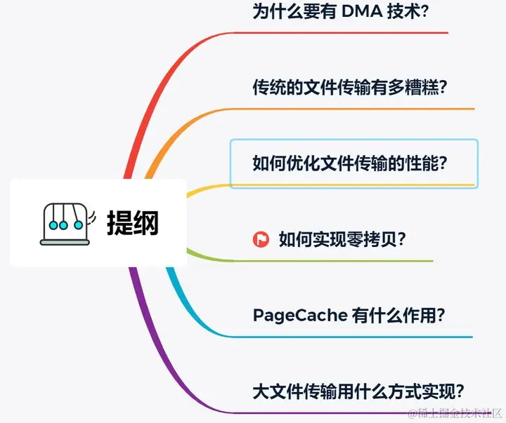 - 传输大文件的时候,由于大文件难以命中 PageCache 缓存,而且会占满 PageCache 导致「热点」文件无法充分利用缓存,从而增大了性能开销,因此,这时应该使用直接 I/O。