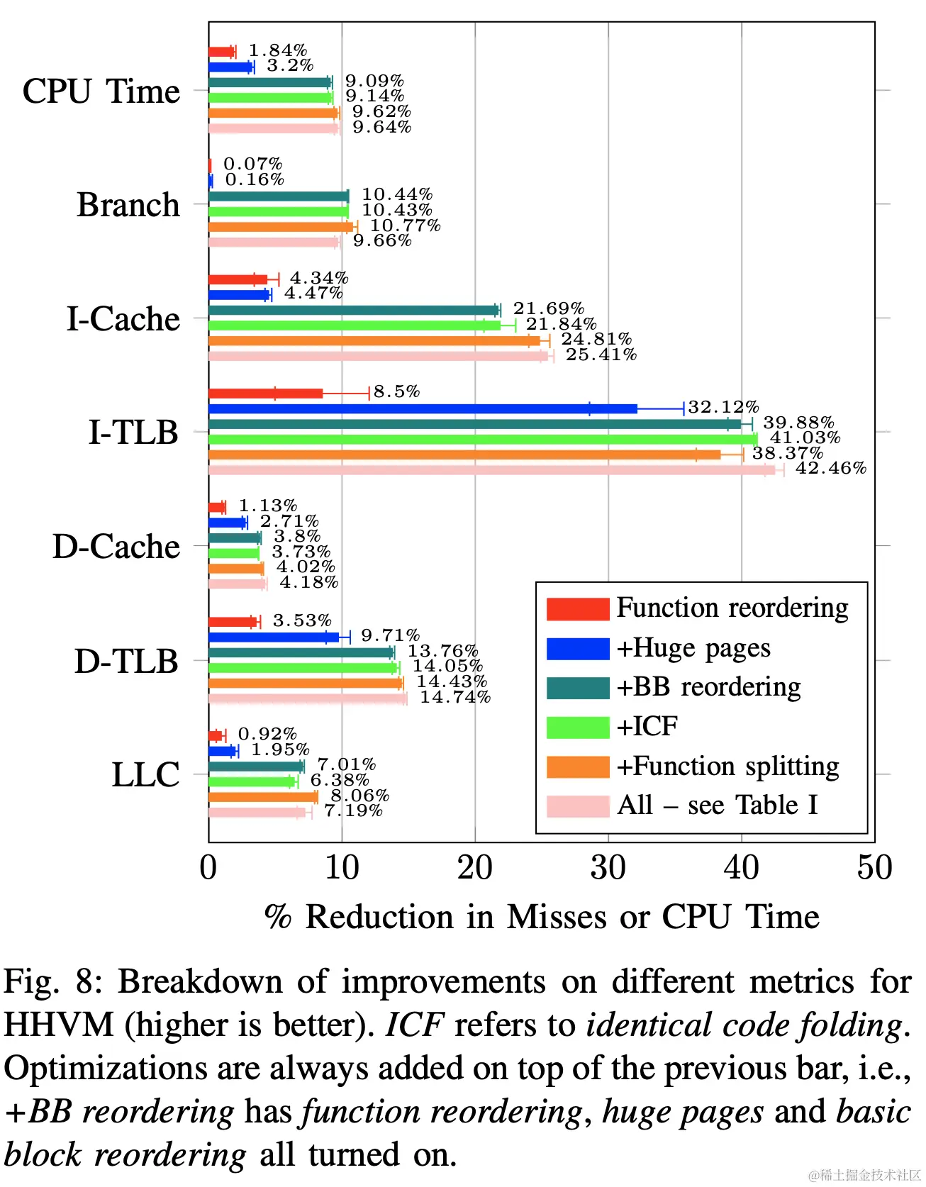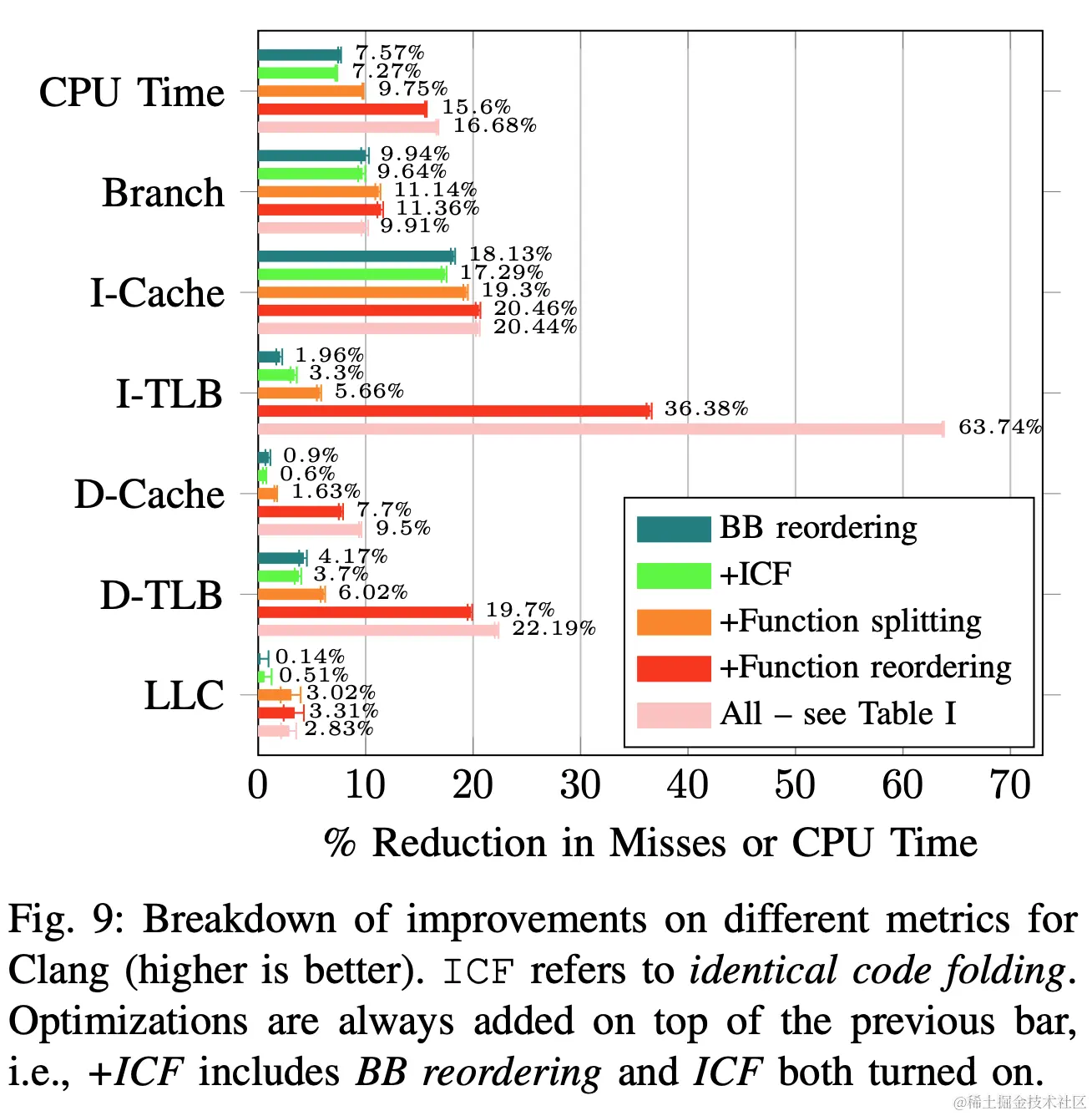 - 表现比dynamic profiler差很多,但是还是比编译器原生的优化好很多:比clang O3加速6%、减少10%的cache miss
