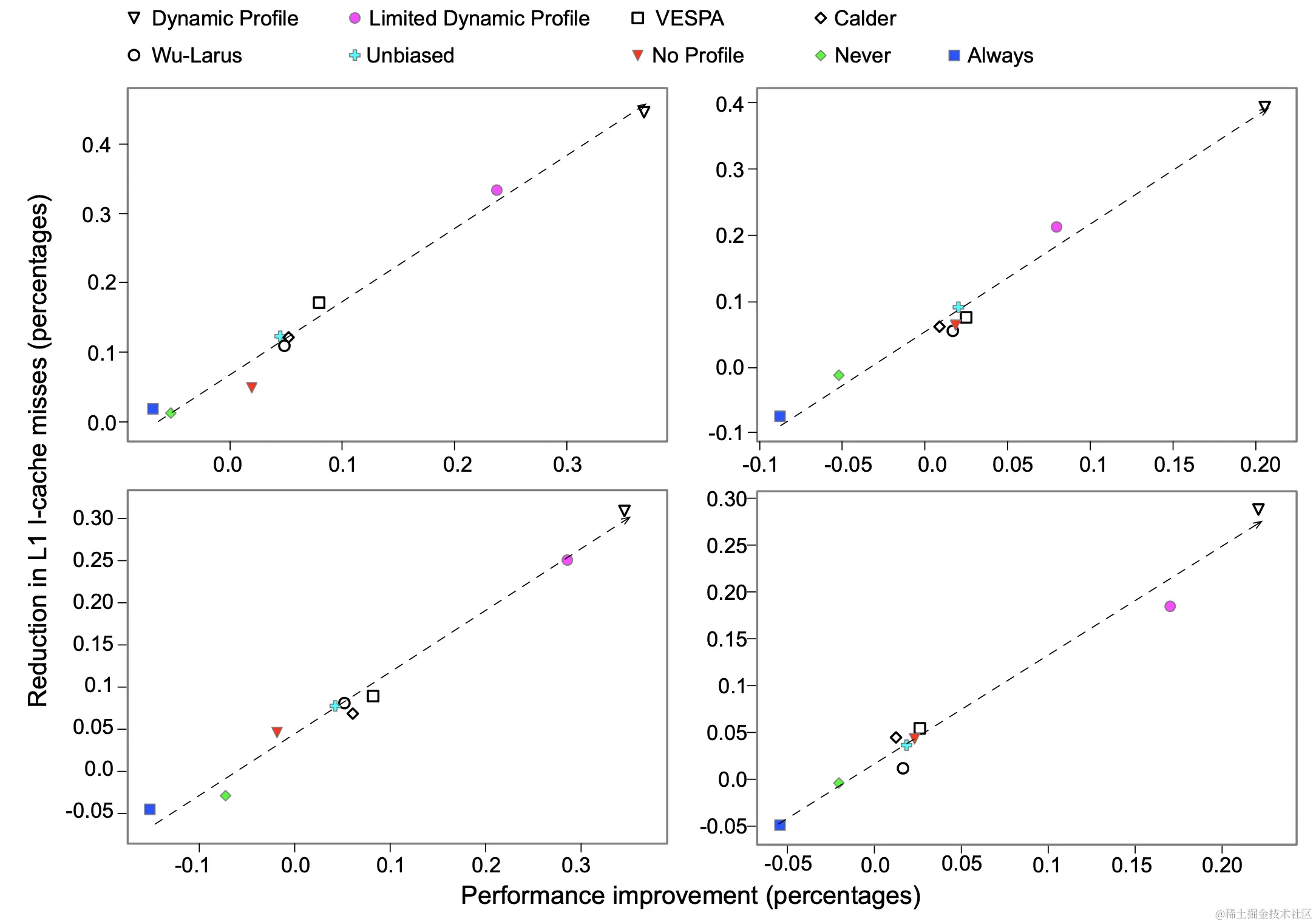 - Cache miss减少与性能提升的相关性