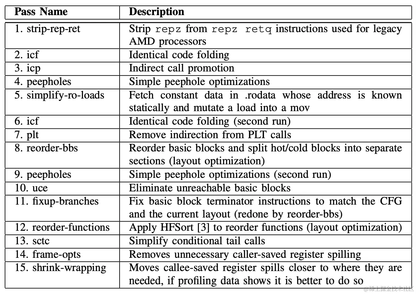 BOLT为Intel x86-64架构开发的优化pass(有序)