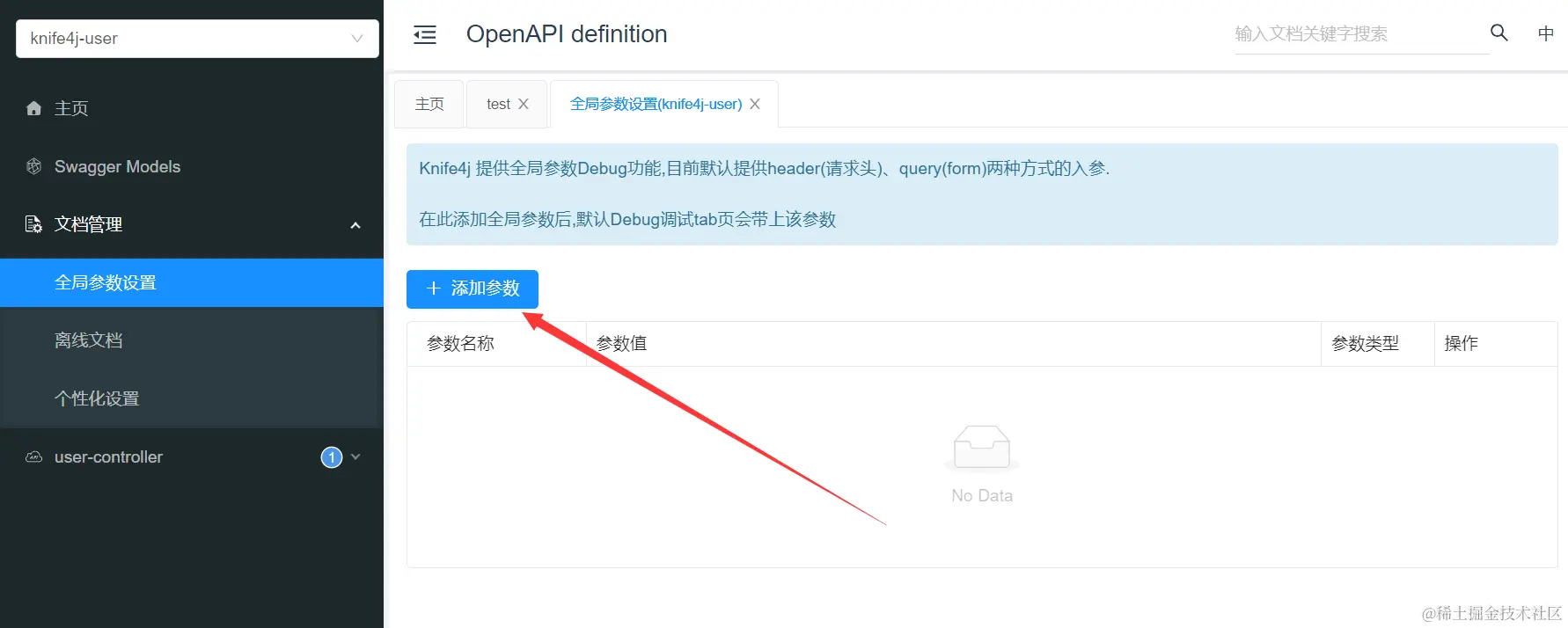 大多数我们请求接口都需要在请求头携带令牌等信息,可以在knife4j设置全局参数,如下: