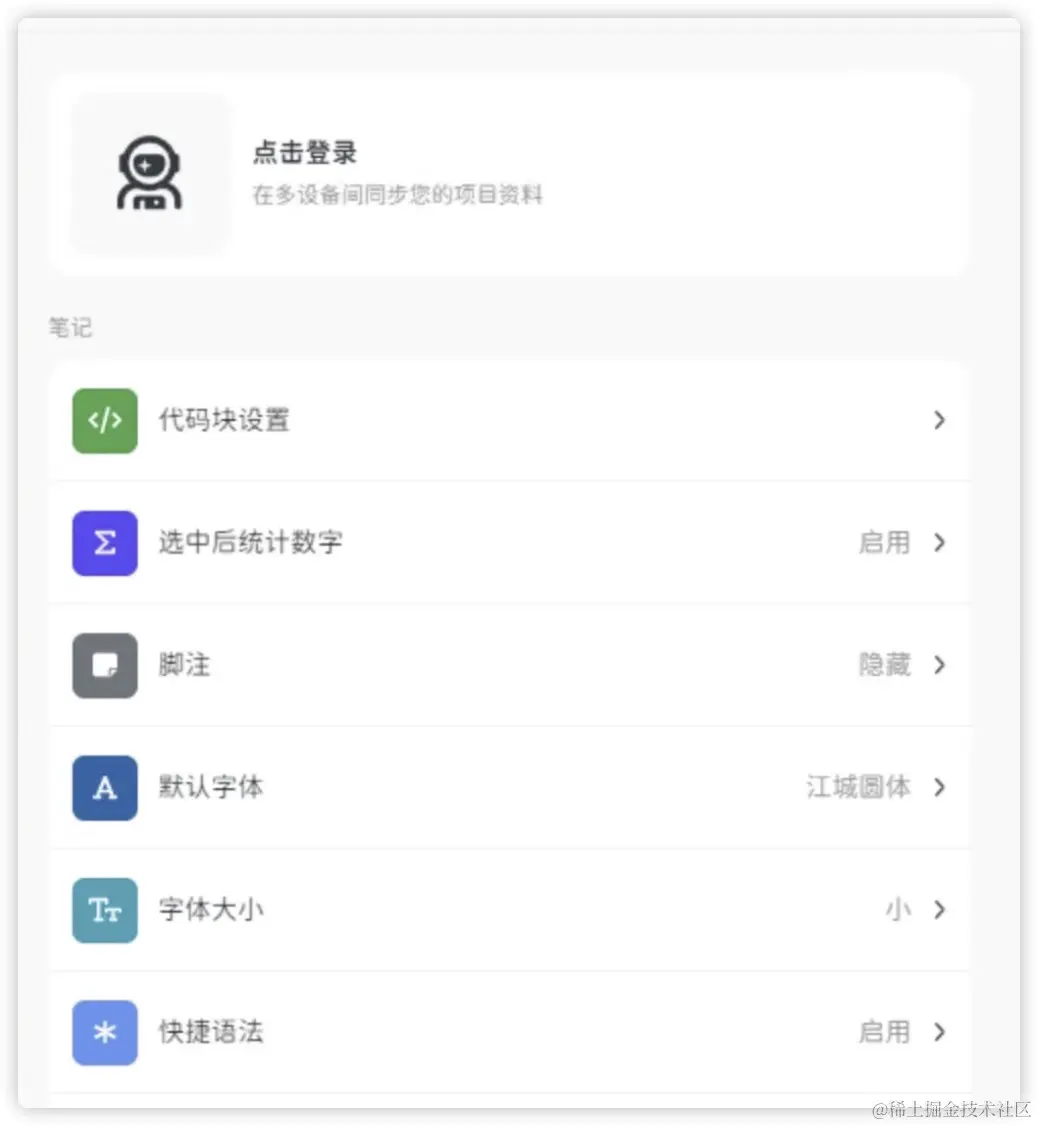 Neatify 笔记的设置页面也进行了重构,变成了类似手机系统设置那样的垂直展现方式,用户信息也放到了最顶部