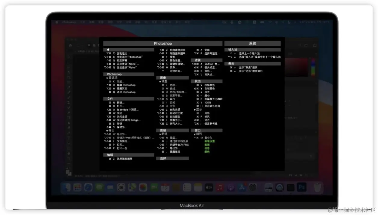 没关系,只要你下载了这款软件,双击Command,即可看到当前App的所有快捷键,适用于Mac系统以及App快捷键展示。