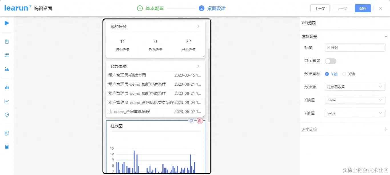 LeaRun低代码开发平台可视化工具秉承低代码的设计理念,让开发者可以通过拖拽搭建积木的方式,所见即所得地快速构建生成应用静态页面工具内置丰富的UI样式组件,节省开发者大量的页面构建时间,让开发者能够更加专注于应用业务逻辑的开发,进一步帮助企业降本增效。