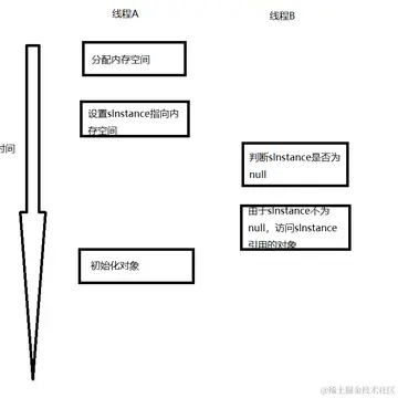instance = &Singleton{}这个语句,包括分配内存、内存初始化、指针赋值三个操作,这里内存初始化和指针赋值可能会发生指令重排序,可能导致第17行返回的instance没有完成内存初始化,而其他线程就会获得一个没有完成初始化的对象