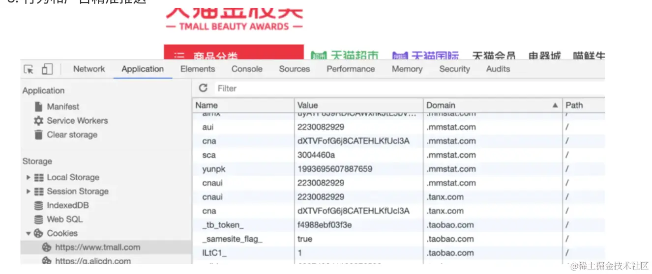 淘宝、天猫都属于阿里旗下的产品,阿里为他们提供统一的登录服务,同时,你的登录信息也会存到这个统一登录服务的域下,所以存到这个域下的 Cookie 就成了三方 Cookie