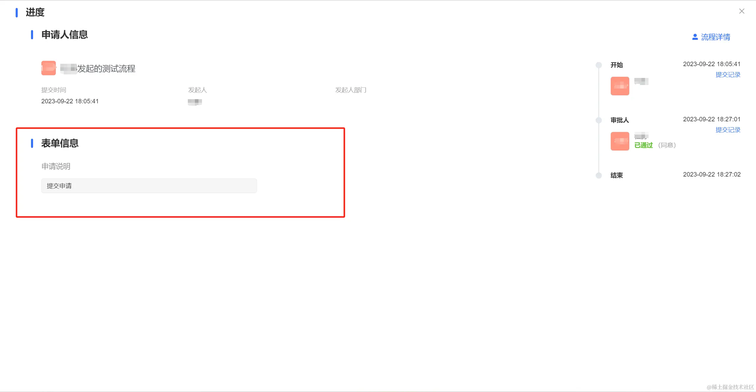 流程流转到对应的节点上时会展示在该节点配置的表单内容。