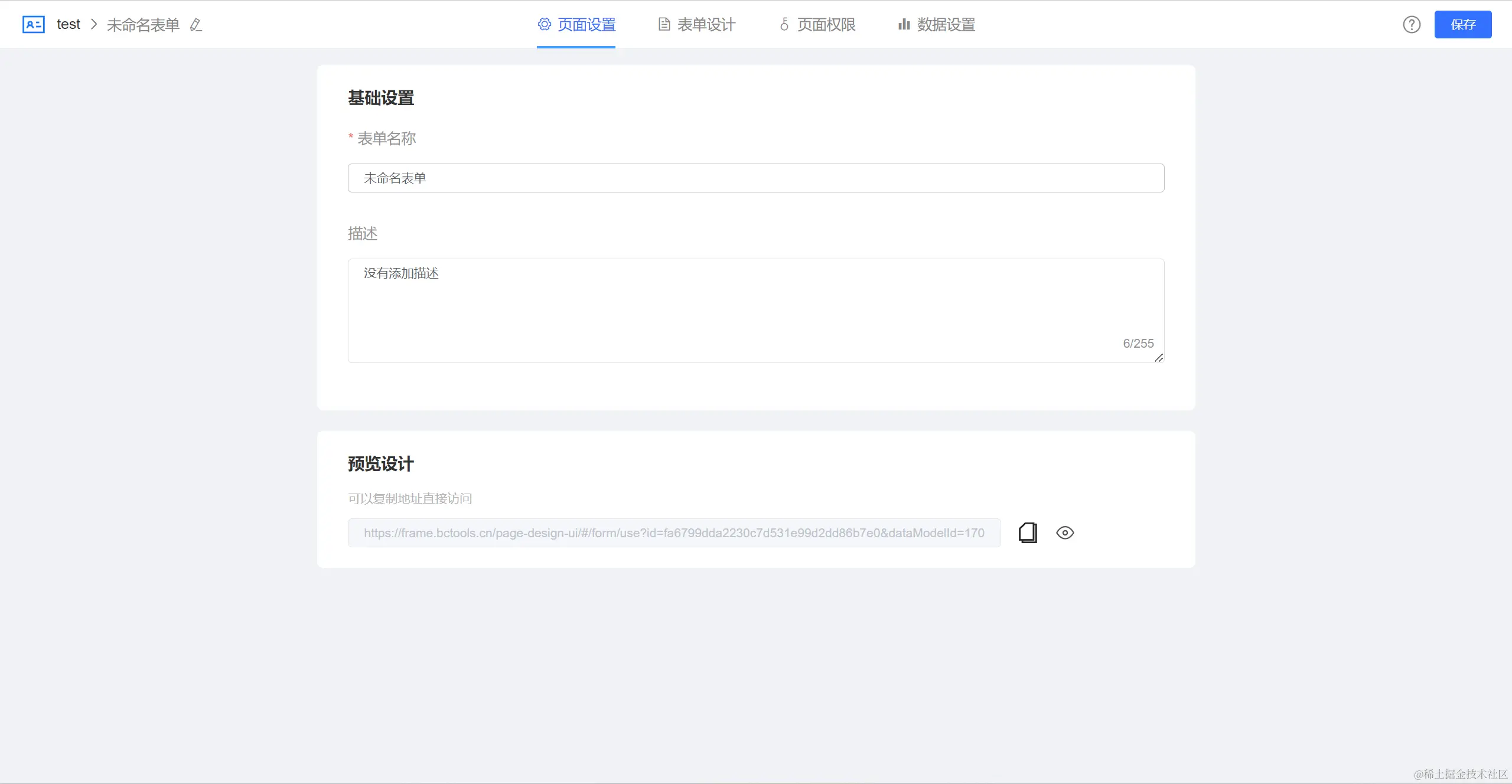 点击【配置表单】跳转至表单设计页面可以对表单页面设置和表单内容设计。