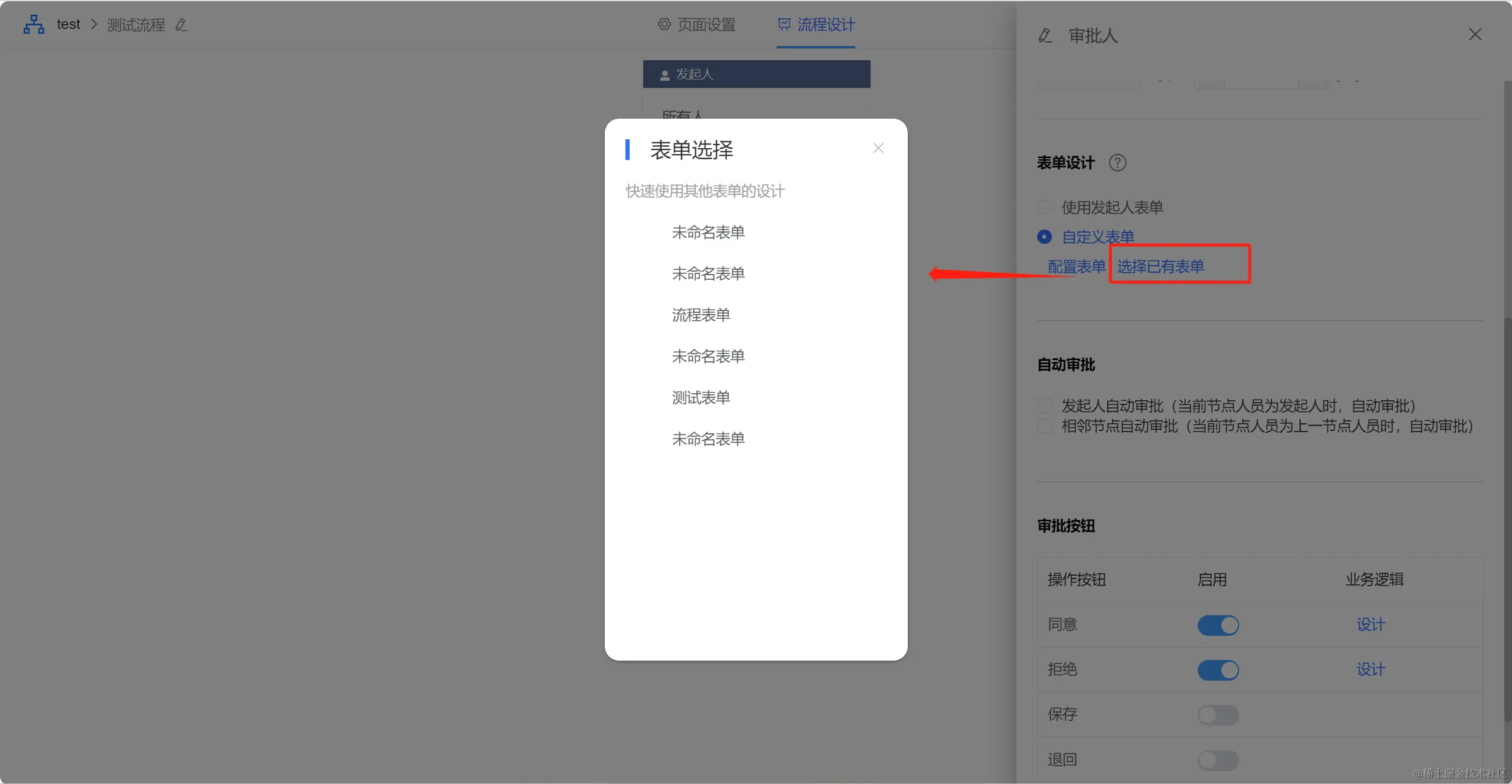 点击【自定义表单】可以选择【配置表单】也可以【选择已有表单】。