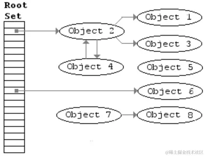 过程比较简单,分为Mark阶段和Sweep阶段,Mark阶段就是从根对象开始广度优先或者深度优先遍历,遍历结束后那些不可达的对象就被认为是垃圾对象,Sweep阶段就是扫描整个堆内存,删除那些不可达的垃圾对象