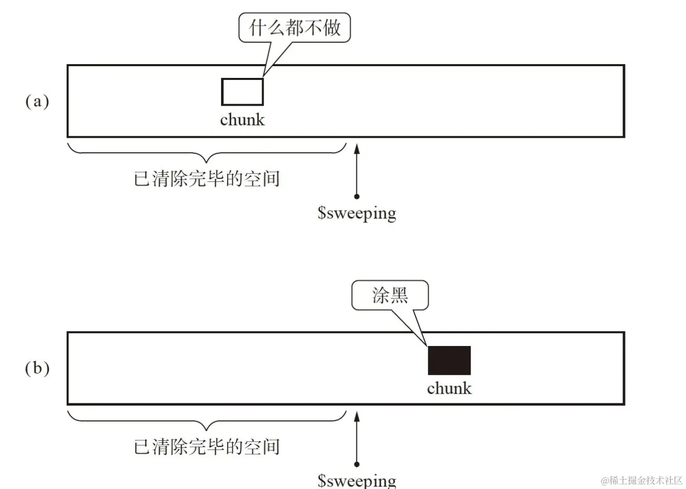Sweep阶段的清除操作是扫描整个堆内存,我们可以记下当前扫描的位置,如果新申请的对象地址是在这个位置之前,我们什么也不用做,因为它不会被误删;如果新申请的对象地址是在这个位置之后,我们可以把直接这个对象的状态标记为黑色,就可以避免被误删。