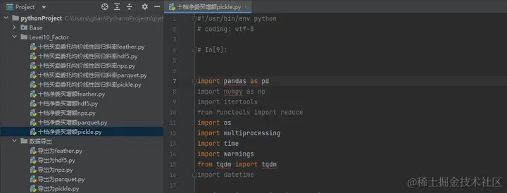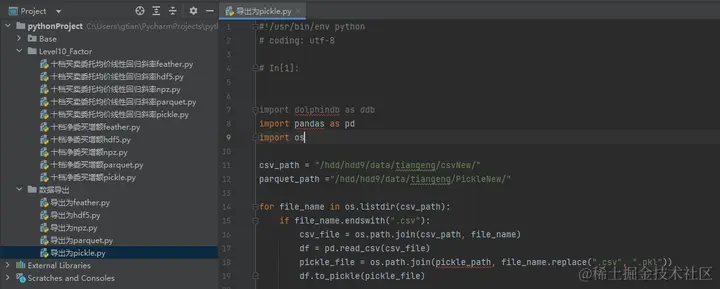 - 在 Python 中运行每个文件将导出的 csv 格式数据转换为对应类型的数据保存到指定路径(以Pickle为例)