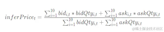 inferPrice = (rowSum(bid*bidQty)+rowSum(ask*askQty))(rowSum(bidQty)+rowSum(askQty))