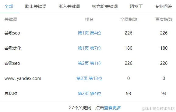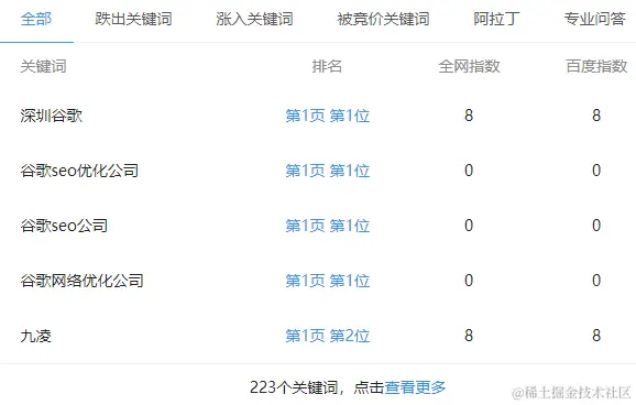 PC端,共有223个关键词在百度有较好的排名,并且大量关键词排名首页第一位或前几位,效果非常好。