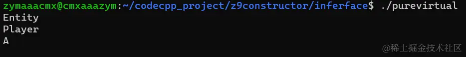 virtual std::string GetName(){ return "Entity" ;} //这里需要特别注意不要忘记了 ;