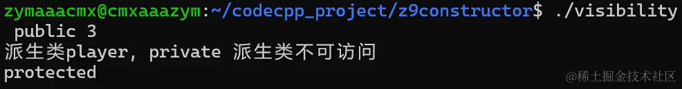 std::cout << "派生类player, private 派生类不可访问" <<std::endl;