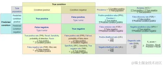 在讨论最后两个指标之前,下面是Wikipedia上提供的一个很好的摘要表,它涵盖了我们在本文中讨论过的所有指标。放大看看图像是否不清晰。