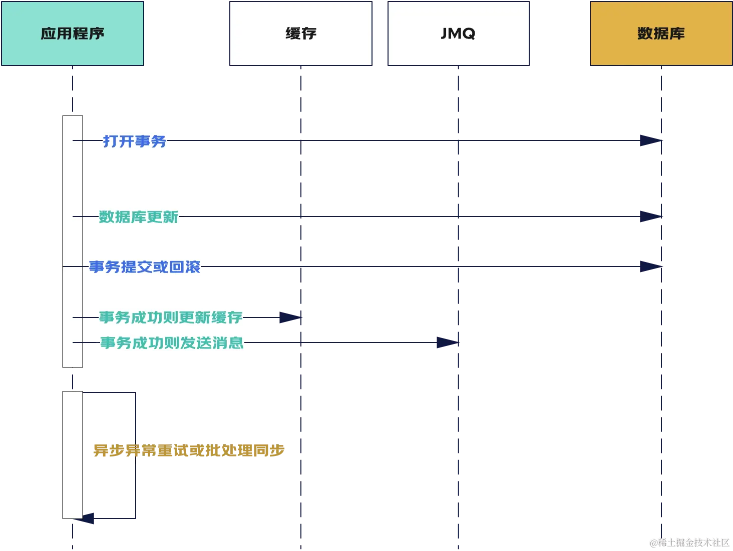 一般我们以数据库数据为准,先数据库提交,再更新缓存或发送消息,通过异步轮询补偿的方式保证异常情况下的最终一致性。