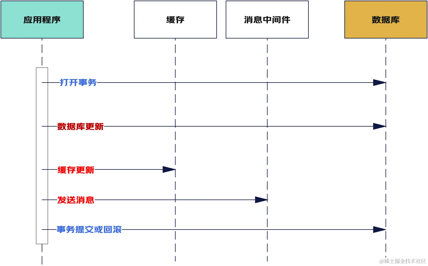 数据库的提交、缓存的更新、RPC的执行、消息的发送的先后顺序