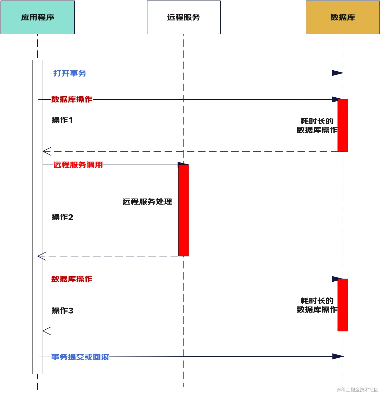 如果事务中有耗时长的SQL或有RPC操作可能会导致事务时间变长,会导致并发量大的情况下数据库连接池被占满,应用无法获取连接资源,在主从架构中会导致主从延时变大。