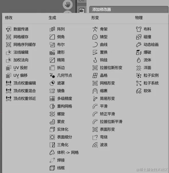 - (2)选中物体,在右边的标题栏,点击修改器属性