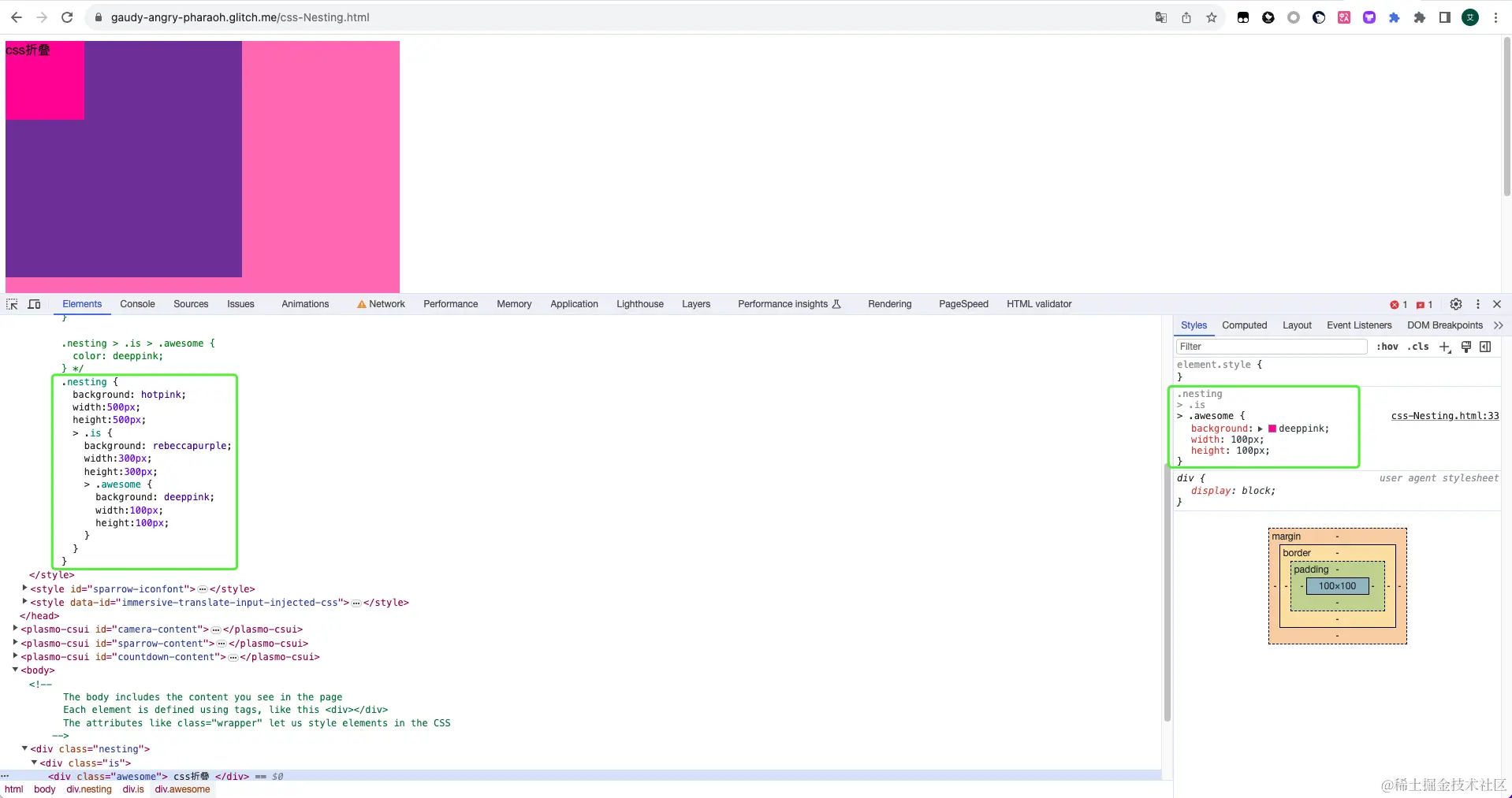 - Css嵌套: 是在chrome112版本(23年4月4日发布)新增的功能,各浏览器支持程度请看这里,117版本目前是优化devTools的css嵌套功能的显示修复,demo地址