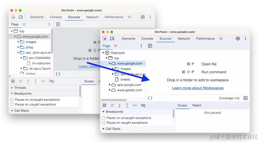 此外,DevTools现在不会尝试加载扩展的源映射文件,因此不会看到与代码无关的“无法加载源映射文件”的警告。