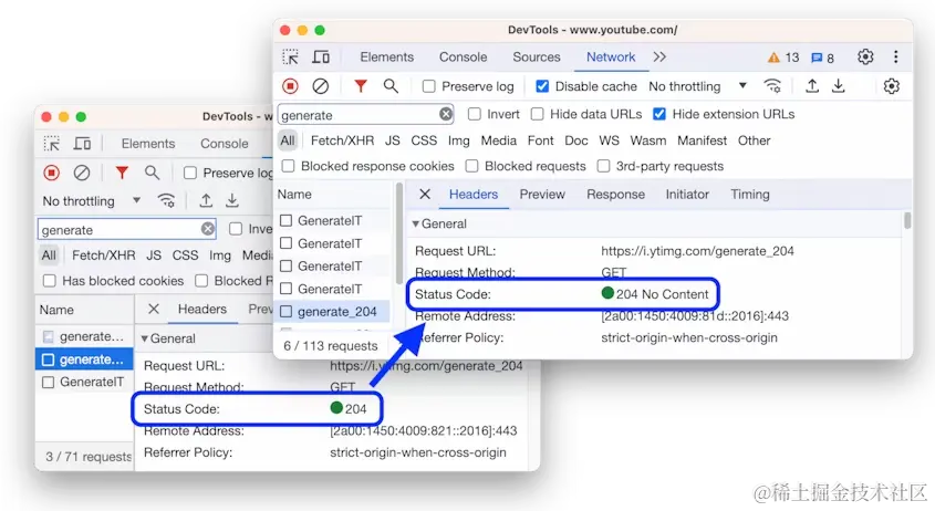 请求标头中的状态代码现在在 HTTP 状态代码旁边显示人类可读的文本,因此可以更快地了解请求发生了什么。